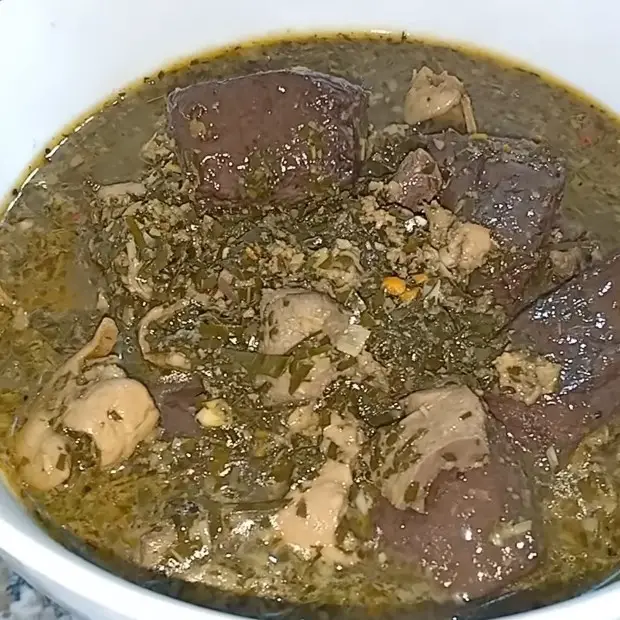 Múc canh lá đắng ra tô. Rắc thêm một chút tiêu xay và vài lát ớt tươi (nếu bạn thích ăn cay) lên trên để trang trí và tăng thêm hương vị. Bát canh nóng hổi, thơm lừng, vị đắng nhẹ của lá đắng hòa quyện với vị ngọt của lòng và thịt, thêm chút cay nồng của mắc khén sẽ khiến bạn và gia đình muốn húp sạch tô ngay đấy!